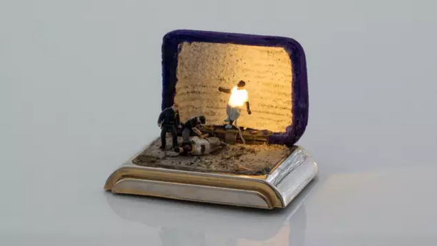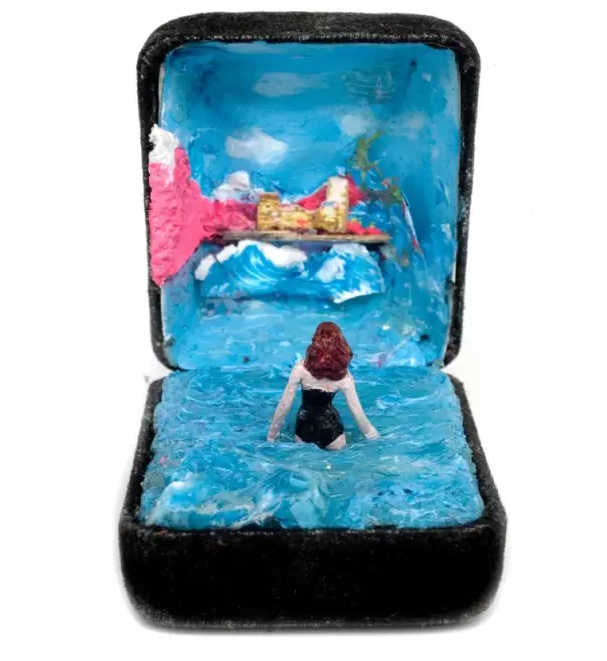 這是一位名叫Curtis Talwst Santiago 的藝術(shù)家的杰作,Talwst開始藝術(shù)創(chuàng)作是在2008年,那時他還是一位前途可期的音樂人,只是閑暇時會用繪畫和雕塑來抵抗溫哥華多雨的憂郁。一天,一個他經(jīng)常光顧的路邊小販拿出一個小首飾盒,想看Talwst能用它做點(diǎn)什么出來。打開這個首飾盒,讓Talwst實現(xiàn)了真正的跨界,他在首飾盒里繪制的微縮立體模型在藝術(shù)舞臺上獨(dú)放異彩。