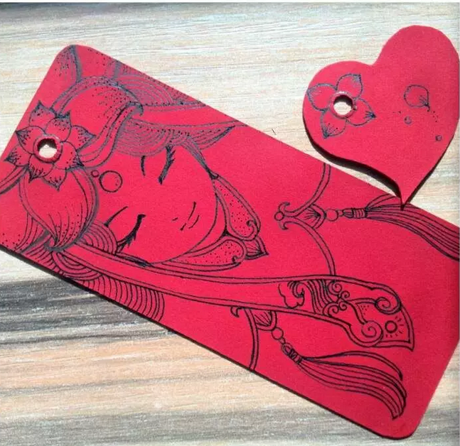 想想還是不能浪費了另外一半吊牌,所以決定盡可能的利用到,所以小編將它剪成了一個紅心,等下可以用來做輔助裝飾。