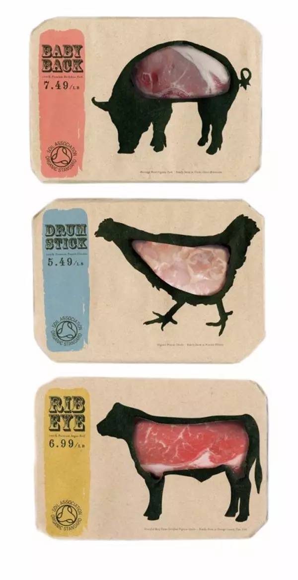 作為一個黑暗料理的制造者,小編往往不能區分雞肉、鴨肉、豬肉等肉是長什么樣的,經常都會弄混,黑暗料理也因此而生,但是如果給這些肉都穿上了產品包裝盒,圖文并茂的包裝設計,就連小編這種小學畢業的人也能輕易的區分出來了。