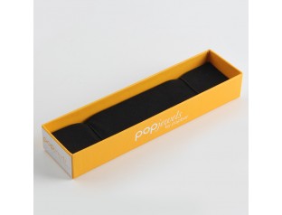 此款手表包裝選用黑卡紙裱膠胚,黑卡紙是特種紙的一種,其表面平整光滑,挺度好,拉力好,耐破度高等。手表盒設計整體選用黑色作為包裝盒主打色,醒目燙金LOGO顯居其中,盒子邊沿白色直線條,簡單,大方。一個好的手表包裝設計會給人一種一見傾心的感覺,想定制高檔手表盒歡迎致電廣州駿業包裝。