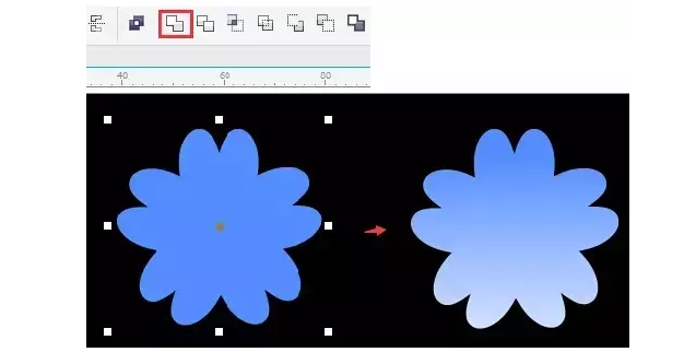 設計服裝吊牌的第八步:修剪圖形 用“橢圓工具”繪制小圓,同時選中小圓與底下“花”造型,執行“修剪”命令,將小圓位置挖空。