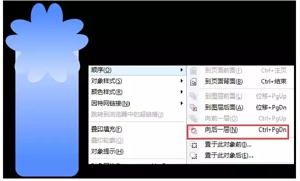 設計服裝吊牌的第五步:調整順序 鼠標右鍵單擊“圓角矩形”在彈出的快捷菜單中選擇“順序”→“向后一層”,如圖所示。