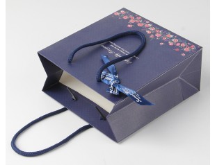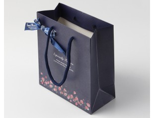這個袋子使用卡紙為主要材料,觸感柔韌,且印刷出來的效果很是驚艷,作為一個珠寶禮品紙袋,它顯得低調、奢華。這款珠寶紙袋有不同的規格尺寸,客戶可以根據禮品的大小選擇包裝袋,不用擔心看上了它,而它的尺寸卻不適合自己的產品了。珠寶禮品袋子拎手使用和紙袋顏色相同的尼龍材質,觸感柔軟。袋子上的蝴蝶結設計給紙袋增加了一絲俏皮感,打破這顏色的沉悶。