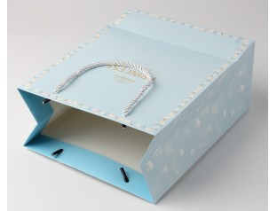 這款淡藍(lán)色的禮品袋使用雙銅紙材質(zhì)制作,制作工藝精良,印刷品質(zhì)可靠,怎么看都是精品中的 精品,散發(fā)著淡淡的優(yōu)雅氣質(zhì)。整個(gè)禮品袋充滿了魅力、優(yōu)雅的氛圍,是送禮給愛人與女性朋友時(shí)禮品包裝袋的不二之選,相信有了這個(gè)禮品袋的加特,你的禮物會(huì)顯得更加的貴重。廣州駿業(yè)包裝引進(jìn)國(guó)外先進(jìn)設(shè)備,采用壓紋、燙金、浮雕等精湛印刷工藝,純手工折紙、穿繩、打結(jié)等細(xì)節(jié)處理,提升禮品袋質(zhì)感。當(dāng)然,這款禮品袋的尺寸以及工藝可按需求定制,我們只做您需要的包裝。