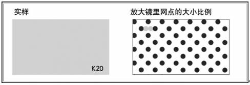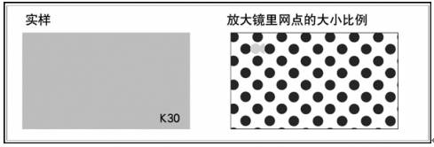即在對邊的兩顆黑網(wǎng)點之間的空隙內(nèi),能放置三顆同等大小的黑網(wǎng)點,就是1成的網(wǎng)點;