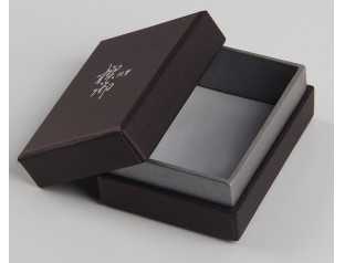 此款珠寶盒包裝采用特種紙裱1000g灰板,商標燙銀珠寶盒設計天地蓋帶圍邊的盒型,圍邊采用深灰色特種紙裱灰板。廣州駿業包裝廠定制的首飾盒采用優良材質,流程機械化與人工的結合,量身定制中高端包裝盒。