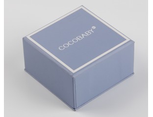 此款首飾盒包裝采用157g銅版紙裱1000g灰板,單色印刷,過啞膠,內盒置入雙層海綿內托。首飾天地蓋盒設計采用了淺藏藍色作為整體色,搭配白色的logo,給人 優雅又活潑 的視覺感。首飾紙盒置入成型的米白色海綿內托,與產品完全吻合,起到固定和美華的作用。
