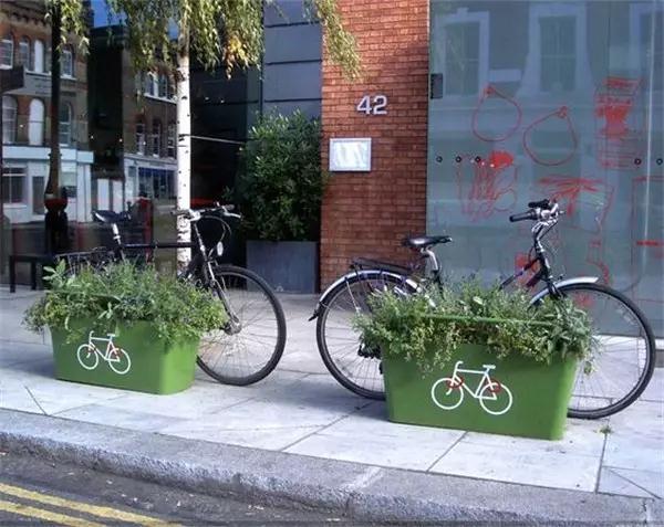 除了密集型的自行車架分布,還有比較零散的,專治那些想隨便停車的人,這個很適合我國“國情”啊~