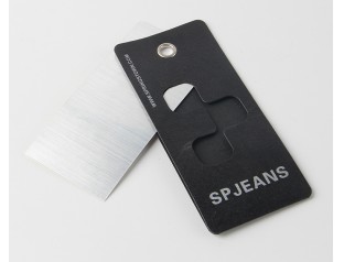 此款品牌吊牌采用黑卡紙對(duì)裱,商標(biāo)燙銀,黑卡紙是特種紙的一種,其表面平整光滑,挺度好,拉力好,耐破度高品牌吊牌設(shè)計(jì)整體采用黑色作為主打色,搭配醒目的燙銀LOGO,經(jīng)典的黑白搭配,彰顯其品牌價(jià)值廣州駿業(yè)包裝廠的吊牌定制,跟進(jìn)客戶要求免費(fèi)設(shè)計(jì),量身定制,流程機(jī)械化與人工結(jié)合打造出中高檔服裝吊牌。