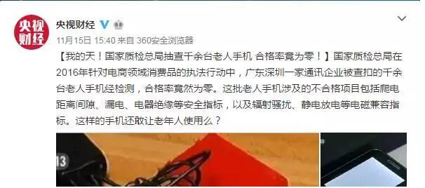 隨著年齡的增長,老人們的聽覺、視覺都在衰退,年輕人用的智能手機已經不再適合他們了,于是作為兒女的紛紛為老人們送上音量大、字體大、操作簡便的老人機。本以為這是為老人量身定做的,想必質量一定是過關的,畢竟誰家里沒有老人呢,但不幸的是近日,質檢總局和深圳市市場稽查局對深圳兩家企業深圳市京立通訊器材有限公司(以下簡稱京立通訊)和深圳市鋒達通通訊設備有限公司(以下簡稱鋒達通)進行抽檢,發現5個品牌31批次近3000部老人手機竟然都不合格。Word天,沒想到那些商家們為了賺錢良心都被狗吃了,做出一些垃圾來“殘害”老人的健康。