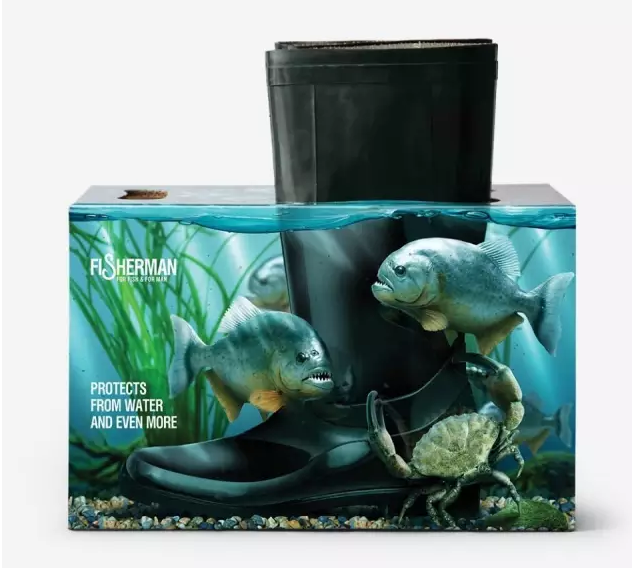 雨靴或許我們都比較少穿,畢竟對于愛美人士來說寧可淌著水走路也不要穿雨靴,但是一些人卻因為工作原因不得不整日與雨靴為伴,比如菜市場里賣魚的人們。今天駿業包裝小編要給大家介紹一款很有創意的雨靴創意包裝,這個很“水產市場”,但是畫面可能讓有點讓害怕像蛇一樣的魚的人感到不適,so,慎點。