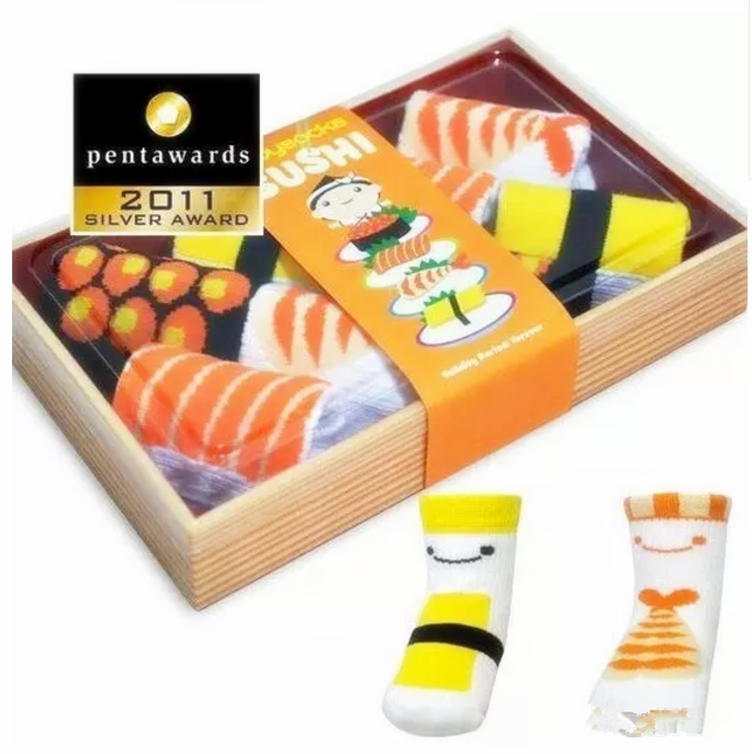 呃,我好像看到了一盒壽司,這個襪子包裝盒厲害了,在2011年設計大賽上獲過獎,能想到將襪子偽裝成食物這設計師的腦洞也是有點大,不過我喜歡,哈哈!