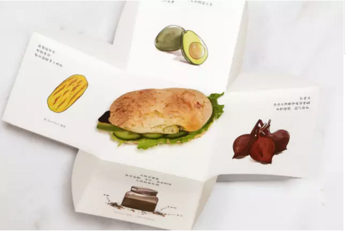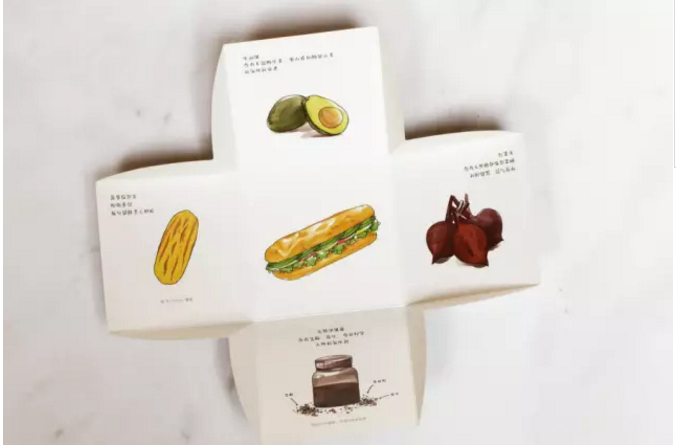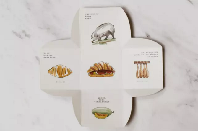 這個包裝盒的設計理念是這樣的,每一個食品的包裝盒上面都圖文解釋這食物的原料、烹飪方式等,讓您在吃的過程中充分了解這食物的來源,甚至還能學學如何烹飪這個食物,在家想吃時可以直接動手做。這是不是比刷手機有意思多了呢?